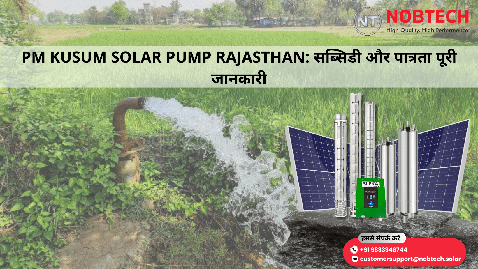 Nobtech Solar एक प्रमुख कंपनी है जो उच्च गुणवत्ता वाले सोलर पंप और अन्य सौर ऊर्जा समाधान प्रदान करती है। Nobtech Solar की सेवाएँ PM Kusum Subsidy, Solar Pump Eligibility, और Rajasthan Solar Scheme से जुड़े सभी आवश्यकताओं को पूरा करती हैं।